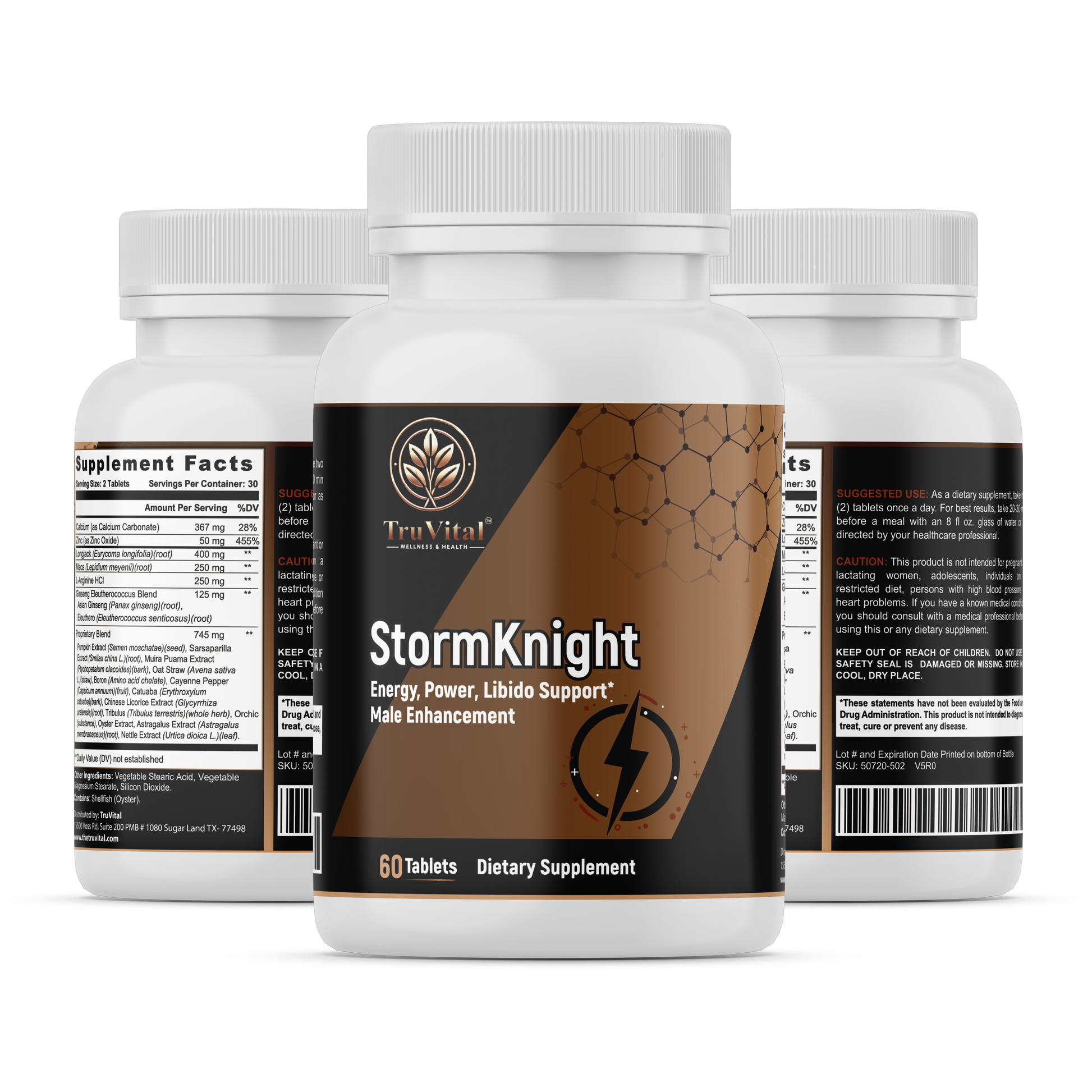 TruVital StormKnight is an advanced blend of minerals, amino acids, and powerful botanical extracts formulated to support male vitality, energy, and stamina. This synergistic formula combines time-honored herbs like Ginseng, Longjack, and Maca with essential nutrients such as Zinc and Calcium to help you perform at your best — both physically and mentally.